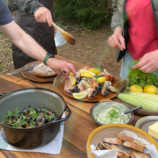 Jointly we will prepare a tasty seasonal meal over fire, enjoy, wine, coffee, and good company – all included in the price.